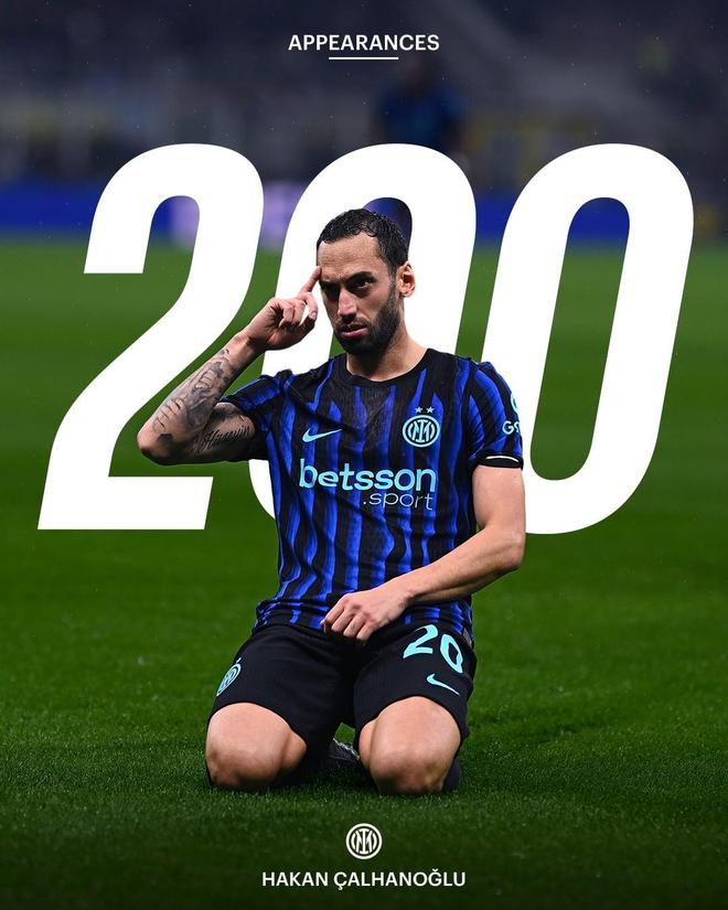 恰爾汗奧盧在歐冠聯(lián)賽階段第6輪主場0-1負(fù)于利物浦的比賽當(dāng)中首發(fā)出場,從而迎來了自己國際米蘭生涯的200場里程碑。